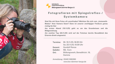 Sind Sie mit Ihren Fotos oft unzufrieden? Dann ist unser zweitägiger Fotokurs genau richtig für Sie!